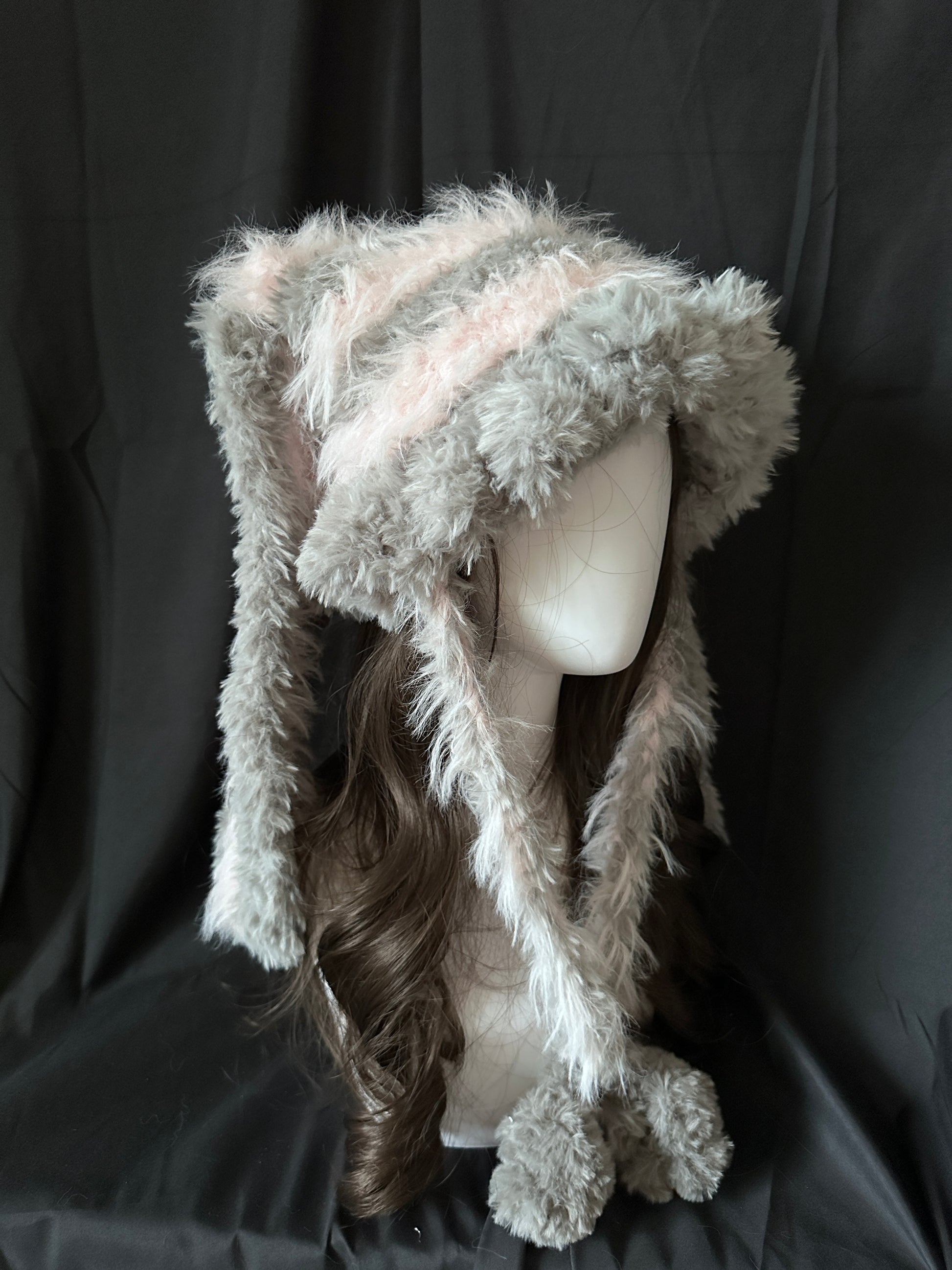 Crochet Cat Ear Beanie: Gray & Pink Bunny Jellyfish Hat