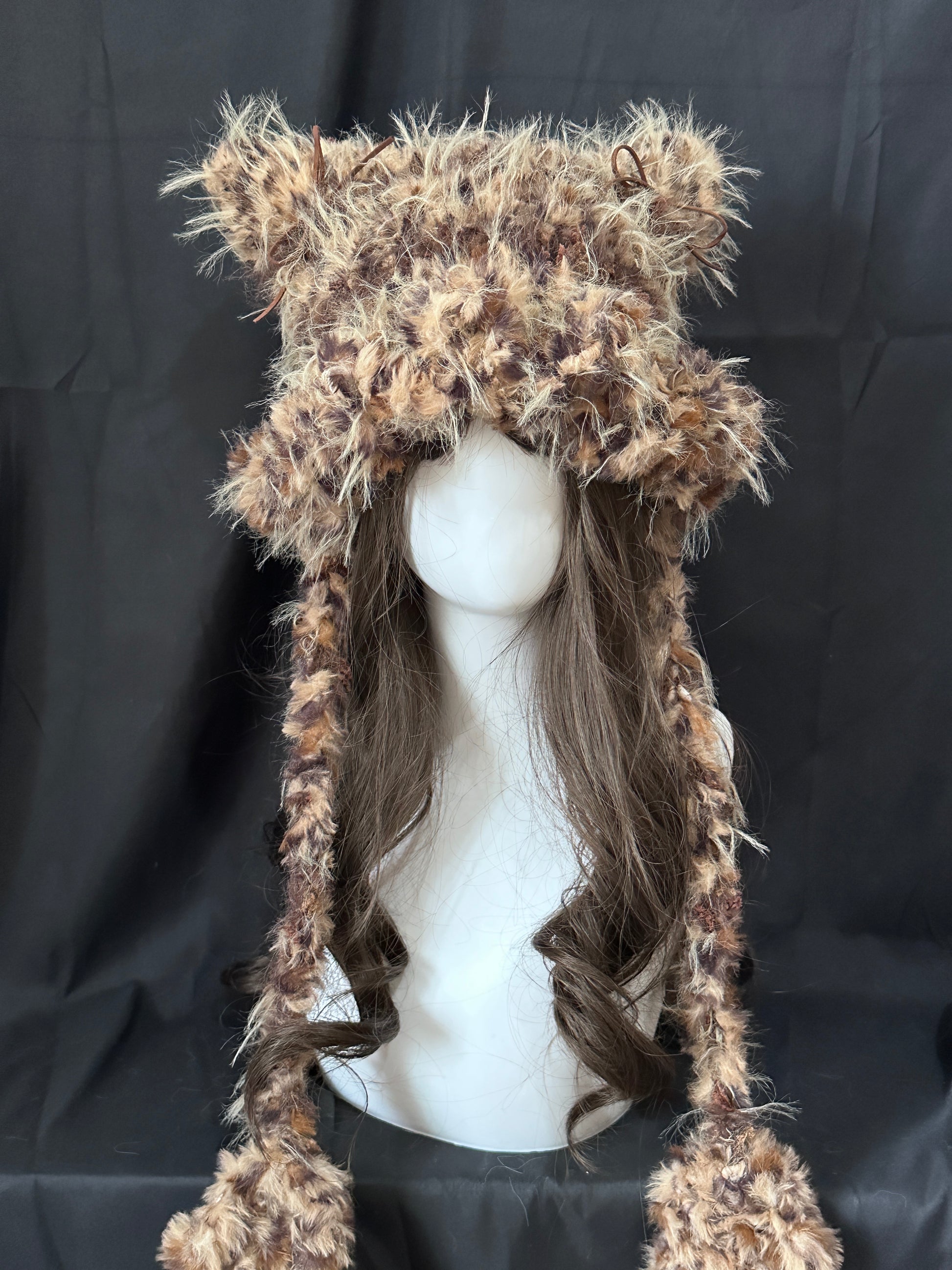 Crochet Cat Ear Beanie: Fluffy Leopard Jellyfish Hat